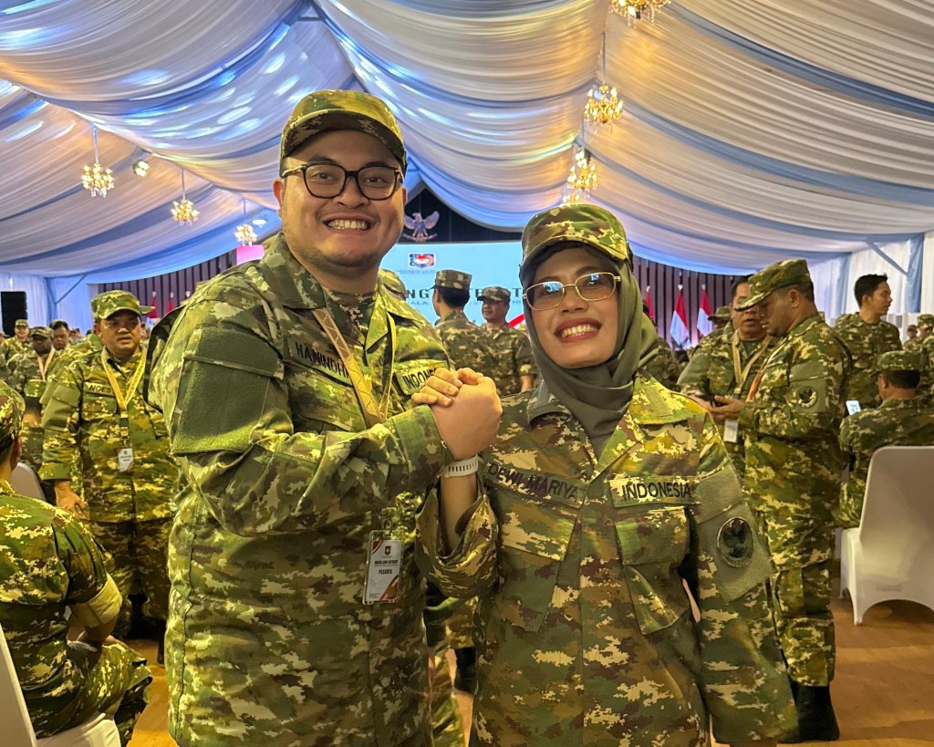 Bersama dengan ratusan wakil kepala daerah lain, Mbak Dewi begitu sapaan akrabnya tiba di lokasi pada Kamis (27/2/2025) pagi dengan mengenakan seragam komcad (komponen cadangan) dan sepatu PDL.