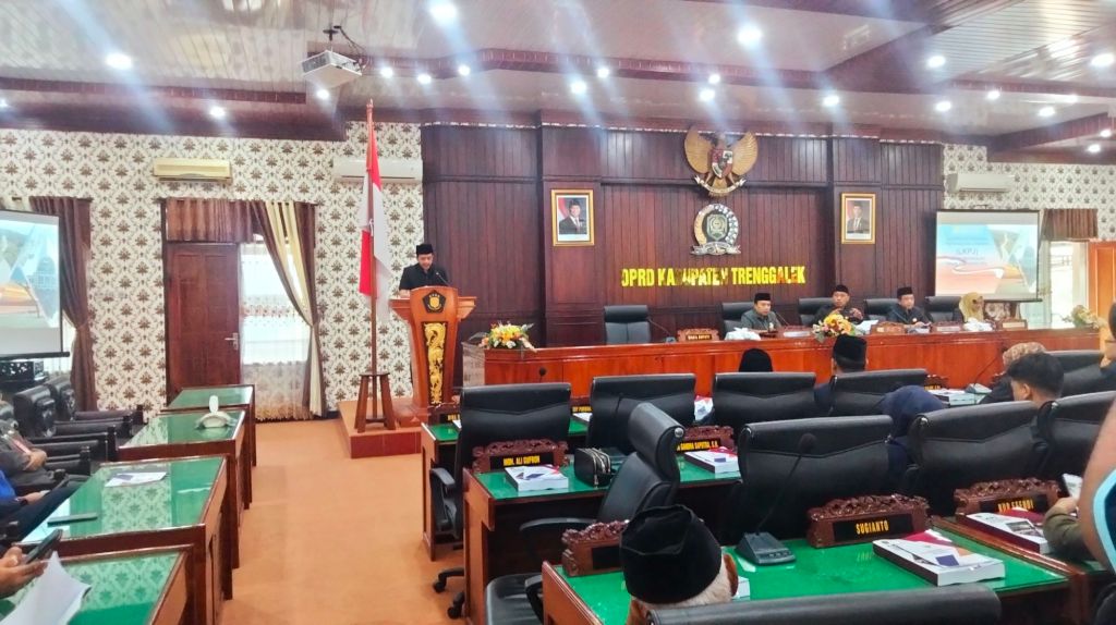 Trenggalek– Wakil Bupati Trenggalek,Syah Mohamad Natanegara, dengan khidmat menyampaikan Laporan Keterangan Pertanggungjawaban (LKPJ) Bupati Trenggalek Tahun Anggaran 2024 dalam Sidang Paripurna Dewan Perwakilan Rakyat Daerah (DPRD) Kabupaten Trenggalek, Kamis. Sidang yang berlangsung di Gedung DPRD Trenggalek ini dipimpin langsung oleh Ketua DPRD, Doding Rahmadi.Kamis(27/3)