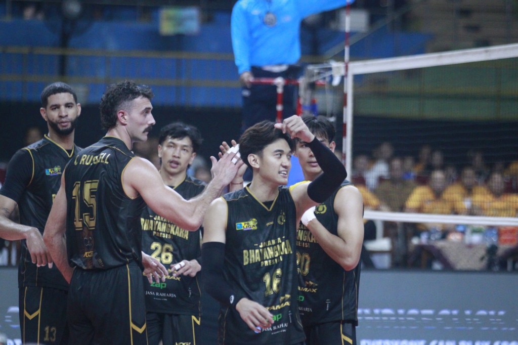 Diperkuat dua legiun asing barunya, Kyle Russel dan Leonardo Leyva Martinez, Bhayangkara Presisi di set pertama tampil dominan, nyaris tanpa cacat. Didukung Farhan Halim, Judha Mardiansyah, Alvin Daniel, Bhayangkara Presisi menang mudah 25-13.