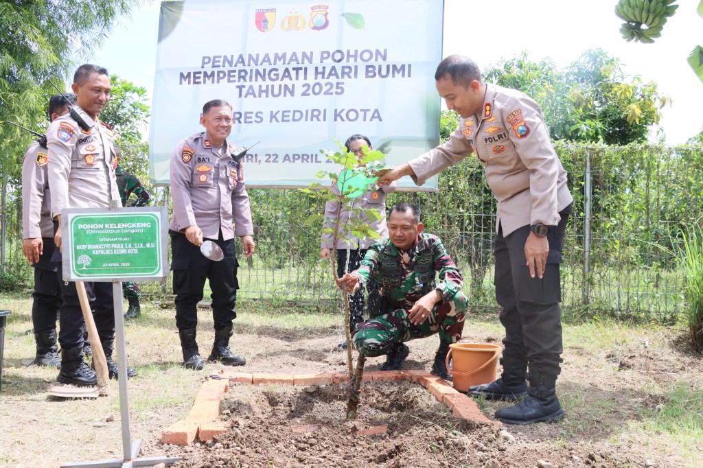 Kediri – Sebagai upaya mendukung pelestarian lingkungan serta menjawab tantangan perubahan iklim, Kapolres Kediri Kota AKBP Bramastyo Priaji, S.H., S.I.K., M.Si. bersama Dandim 0809 Kediri Letkol Inf. Ragil Jaka Utama, S.Hub, Int., M.H. melakukan aksi tanam Pohon di Koramil Grogol dan Polsek Grogol. Kegiatan tersebut dalam rangka memperingati hari Bumi Sedunia, Selasa (22/4/2025).
