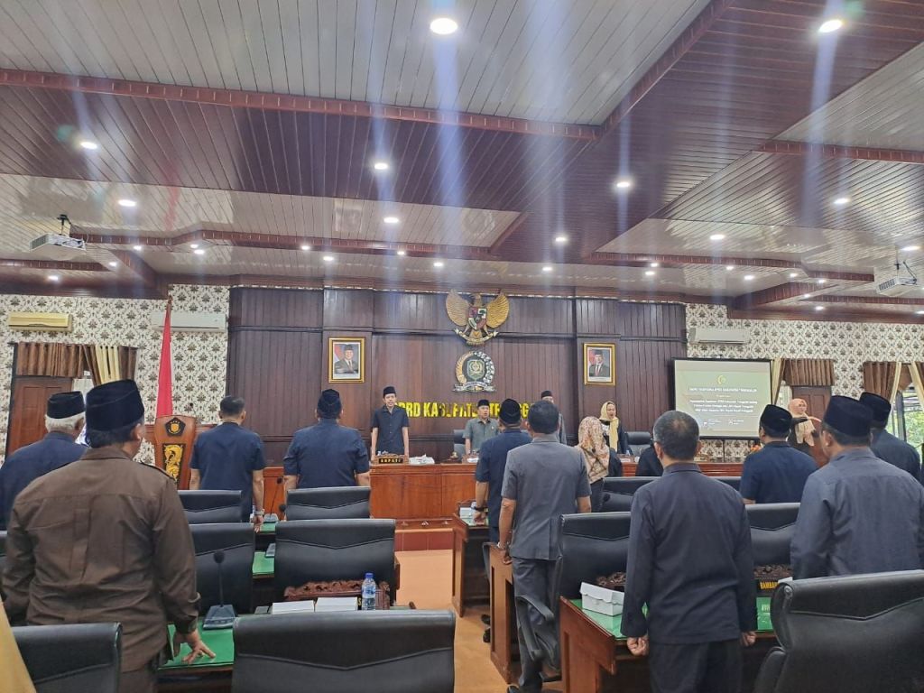 TRENGGALEK – Dewan Perwakilan Rakyat Daerah (DPRD) Kabupaten Trenggalek menggelar rapat paripurna. dalam rangka penyampaian rekomendasi atas Laporan Keterangan Pertanggungjawaban (LKPJ) Tahun Anggaran 2024. Wakil Bupati Trenggalek, Syah Mohamad Natanegara, turut hadir dalam forum penting yang berlangsung di Ruang Rapat Paripurna DPRD tersebut.Senin(28/4)