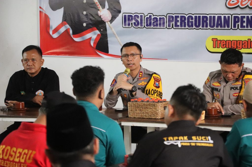 TRENGGALEK – Polres Trenggalek bergerak cepat mengantisipasi potensi gangguan keamanan, salah satunya dengan merangkul perguruan pencak silat yang ada di Kabupaten Trenggalek. Kapolres Trenggalek AKBP Ridwan Maliki menggelar silaturahmi dan diskusi bersama pengurus IPSI dan perwakilan perguruan pencak silat se-Kabupaten Trenggalek.Jum’at(9/5)