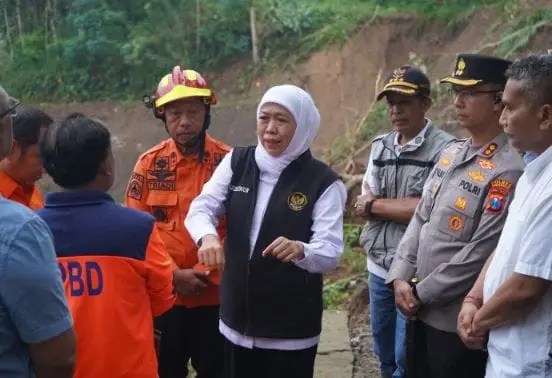 Trenggalek,- Gubernur Jawa Timur, Khofifah Indar Parawansa, langsung terjun ke lokasi bencana longsor di Dusun Kebonagung, Desa Depok, Kecamatan Bendungan, Kabupaten Trenggalek, pada Rabu malam (21/5/2025). Kunjungan ini dilakukan untuk memastikan penanganan 26 warga pengungsi berjalan optimal.