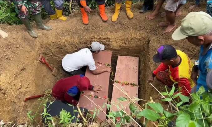 “Karena cuaca tidak mendukung, akhirnya proses pemakaman dilakukan hari ini. Kedua jenazah dimakamkan dalam satu liang sesuai kesepakatan keluarga,” ujar Sugeng.