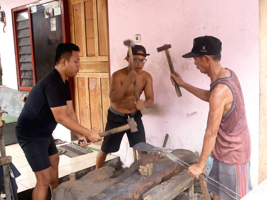 Bising suara dari pukulan palu dan bau asap arang sisa pembakaran besi, menjadi rutinitas Margiono setiap hari.