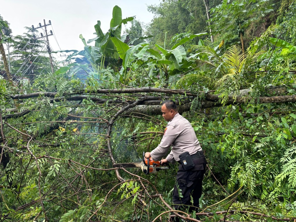 “Diperkirakan pohon tumbang akibat hujan yang cukup deras. Tidak ada korban jiwa,” ujar Iptu Siswanto.