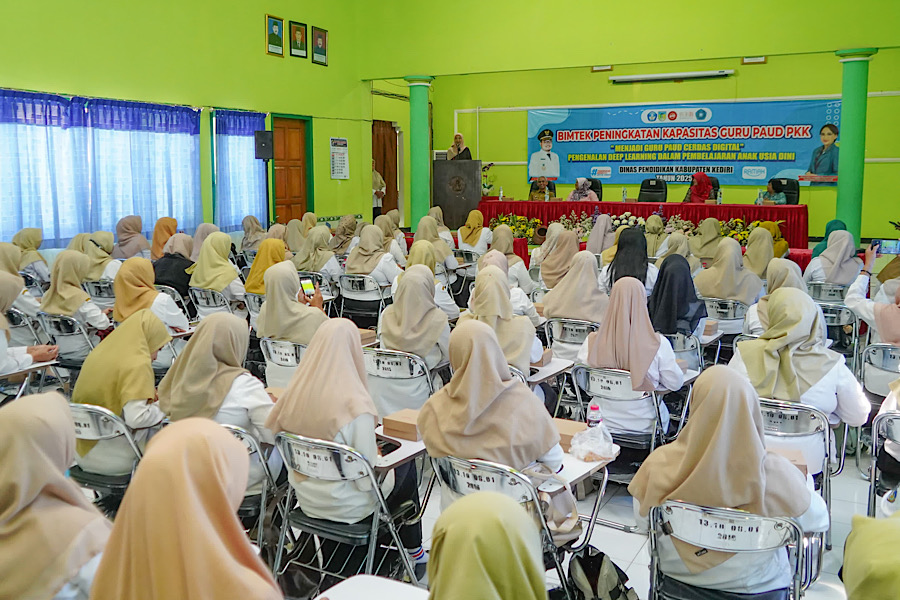 “Saya berharap setelah mengikuti Bimtek ini para guru Paud dapat menjadi agen perubahan yang aktif dan efektif dalam pembelajaran yang lebih baik lagi,” kata Mbak Cicha, dalam pembukaan Bimbingan Teknis (Bimtek) Peningkatan Kapasitas Guru PAUD PKK Kabupaten Kediri di Aula Dinas Pendidikan, Selasa (22/7/2025).