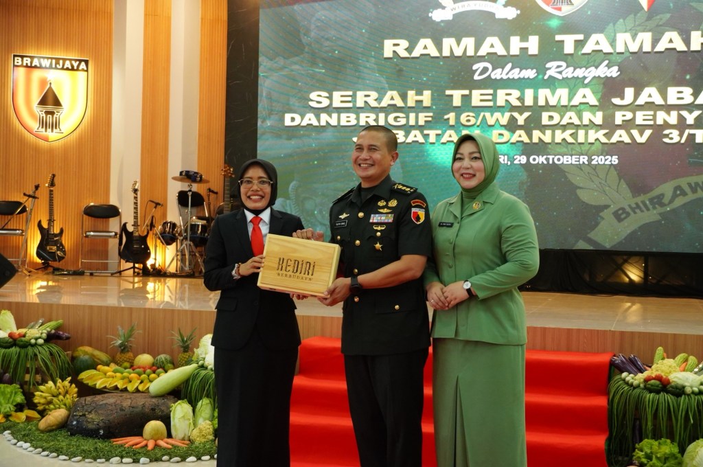 Kediri – Wakil Bupati Kediri Dewi Mariya Ulfa menghadiri upacara serah terima jabatan Komandan Brigade Infanteri (Brigif) 16/Wira Yudha, yang berlangsung di Lapangan Upacara Mako Brigif 16/Wira Yudha, Rabu (29/10).